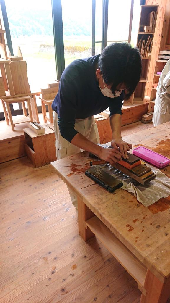 「ウッドラボ池田」で、ものづくりマイスターの内藤先生よりノミ・カンナの研ぎを教わりました 2024.5.1 家具製造工程で働く入社3年目までの若手社員5名が、 「ウッドラボ池田」で、ものづくりマイスターの内藤先生より、 ノミやカンナの研ぎ方を教わりました。 1日夢中で刃物を研ぐ経験をしたことで、今後も技能検定受験に向けて、 道具を大切に使っていきたいという気持ちになりました。